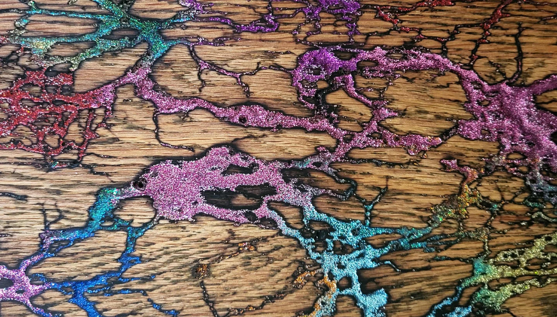 27) 17 3/4"x 8" Solid Oak Reversible Serving / Charcuterie / Bread - Sparkling Multicolored- Fractal Burned - Food Safe