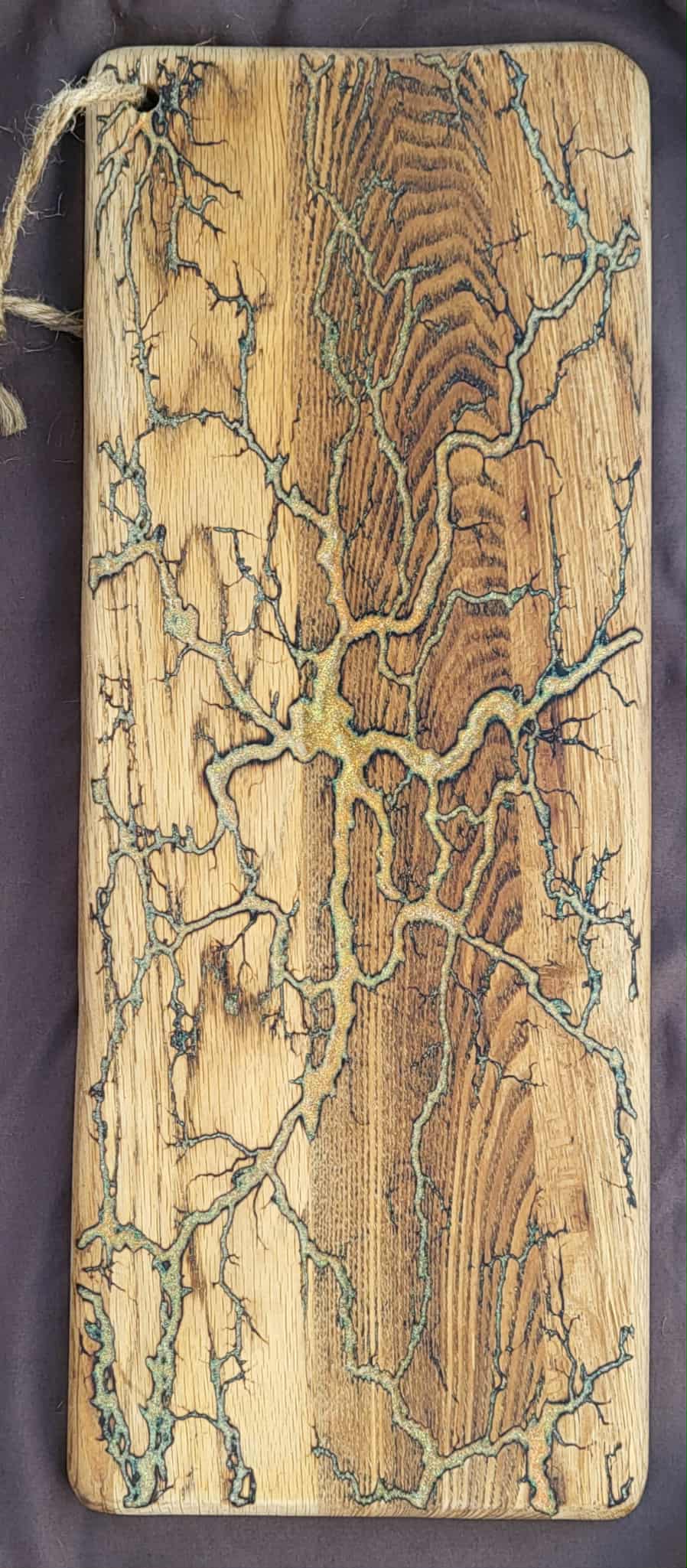 3) 20"x8" Solid Oak Reversible Serving / Charcuterie / Cutting Board- Goldish Copper & Iridescent Silver - Fractal Burned - Food Safe