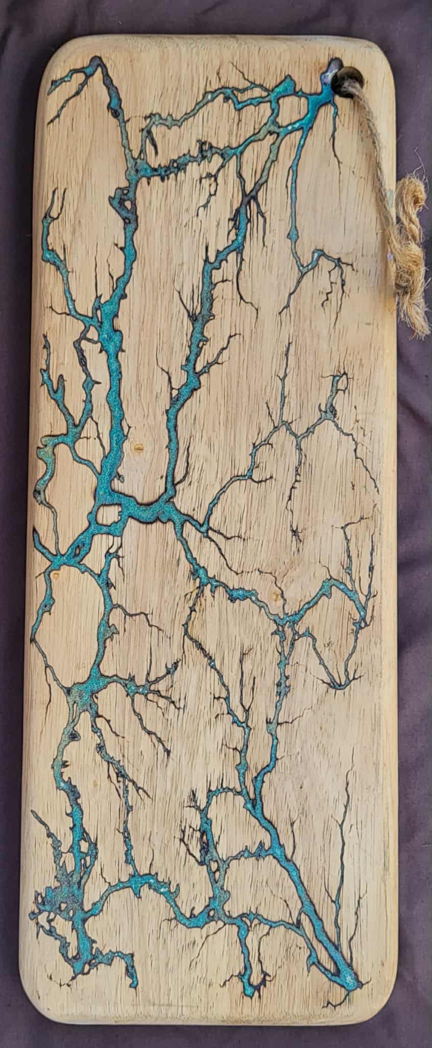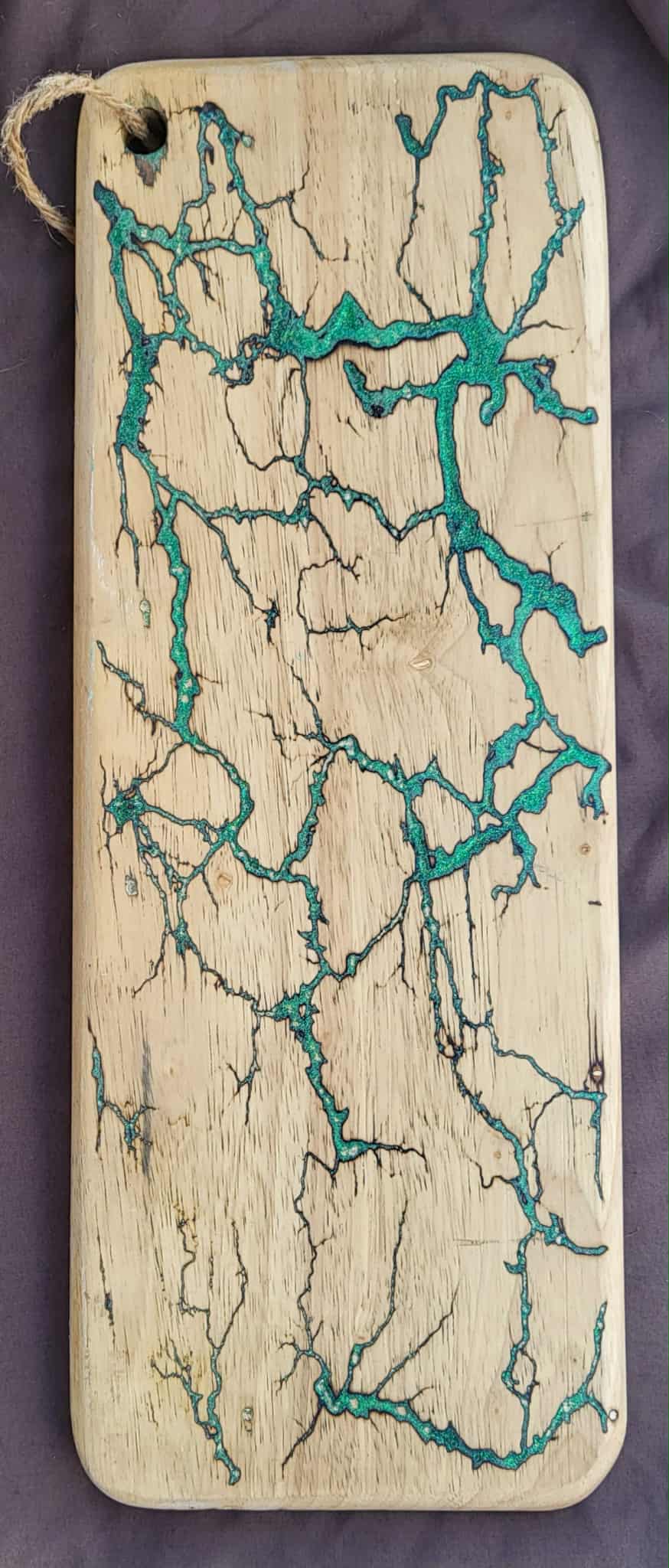 8) 20"x8" Reversible Serving / Charcuterie / Bread / Cutting Board- Sparkling Teal & Emerald Green - Fractal Burned - Food Safe